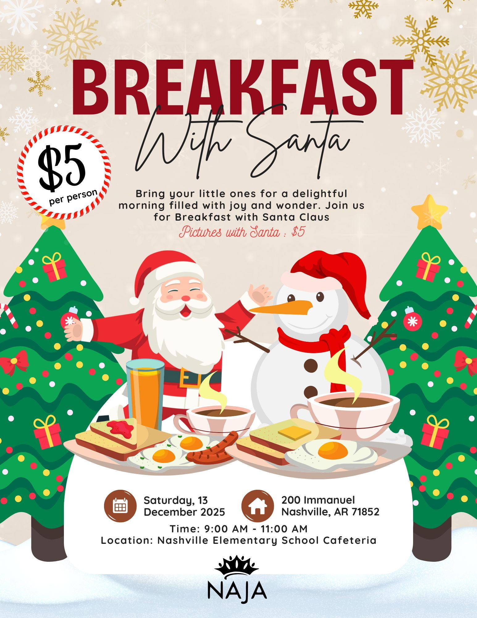 Home Breaking News JA’s Breakfast with Santa on Saturday, Dec. 13 Breaking News JA’s Breakfast with Santa on Saturday, Dec. 13 By Nashville News Leader - December 4, 2025 46 0 FacebookTwitterPinterestWhatsApp